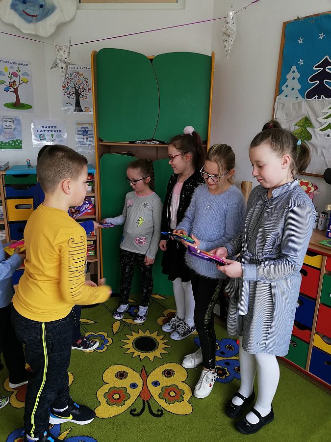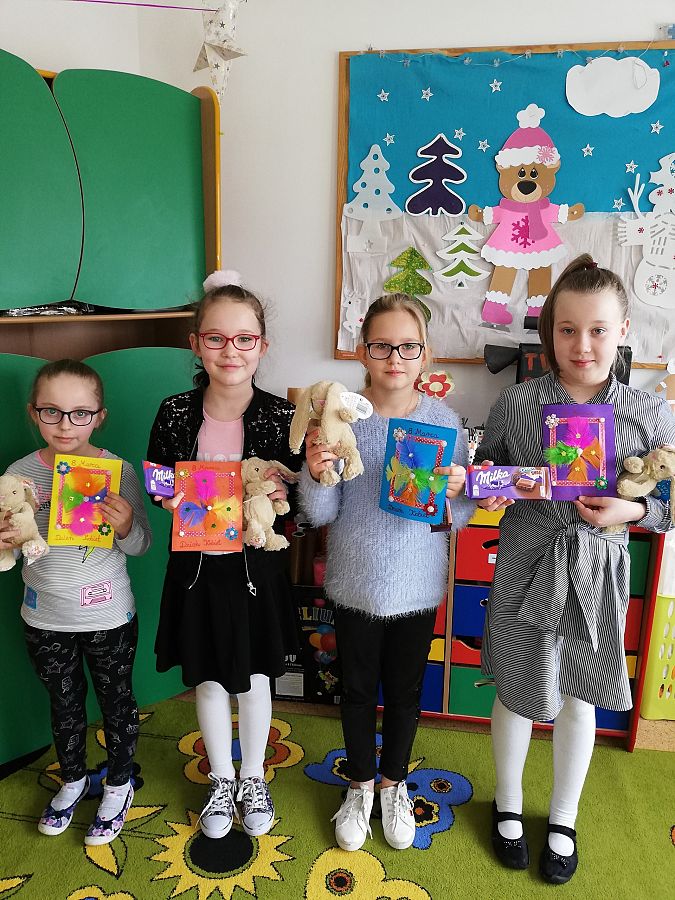 Jak co roku w naszej klasie obchodziliśmy Dzień Kobiet. Chłopcy przygotowali z tej okazji prezenty dla swoich koleżanek i wychowawczyni, piękne laurki, maskotki i czekoladę. Złożyli życzenia i odśpiewali Sto lat. Bardzo im dziękujemy za pamięć i upominki