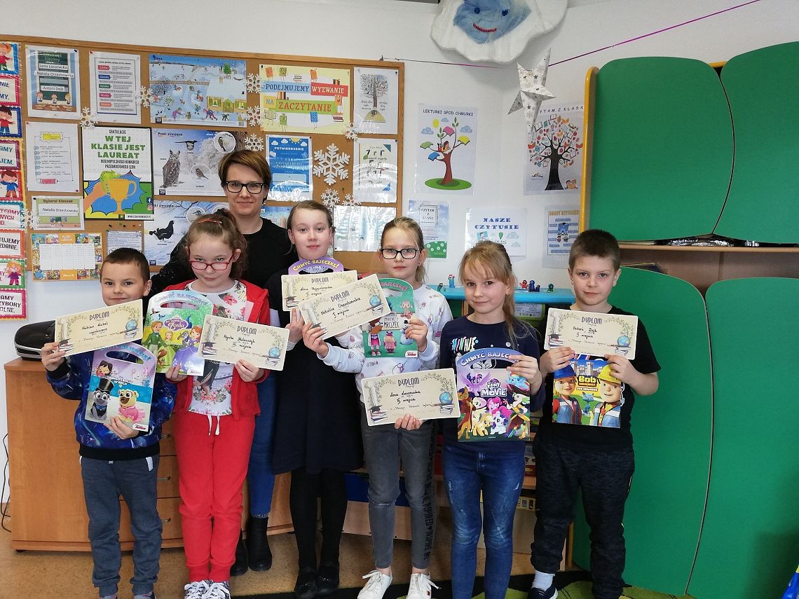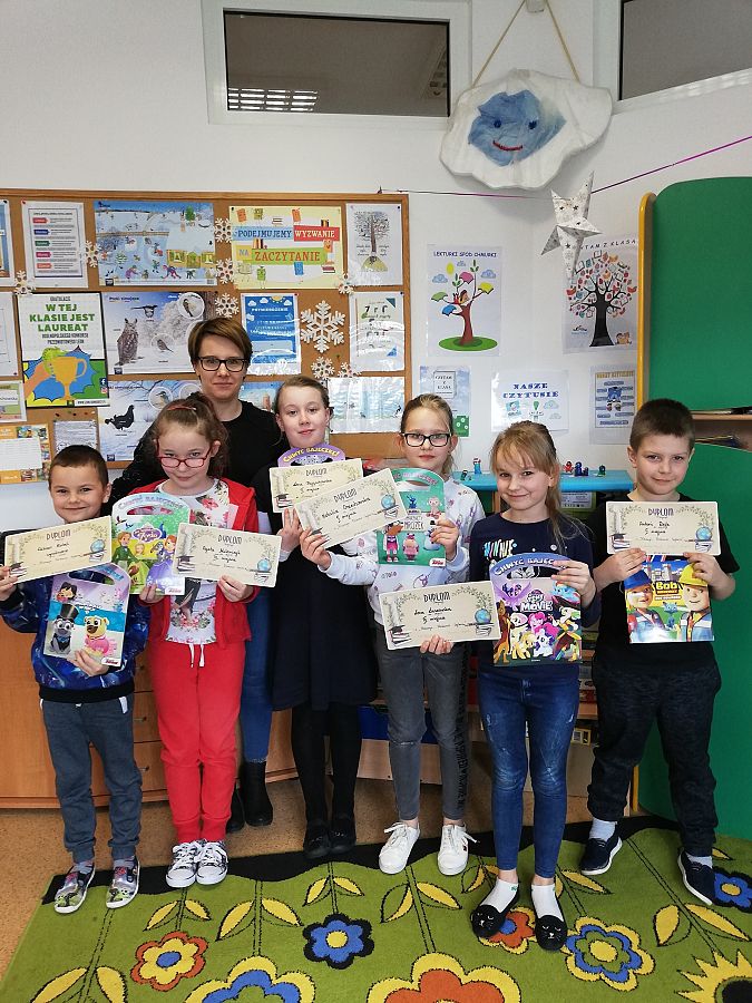 27.02.2020 w naszej klasie (2 a) odbył sie konkurs czytania. Oceniano technikę czytania - płynność, - stan usterek technicznych (potknięcia, wtręty, przekształcenia tekstu), - poprawność artykulacji, - wyrazistość mowy (dykcja), - tempo czytania. Stosowanie środków ekspresji artystycznej: - pauzowanie, , modulacja głosu, głośność, natężenie głosu. Wszyscy uczniowie spisali sie swietnie. Pani bibliotekarka Kornelia Skrzyńska była pod wrażeniem . I miejsce zajęła N.Orzechowska, ii miejsce A.Dejk oraz L. Pajączkowska III miejsce L. Łaszewska i A. Milewczyk. Wszystkie dzieci otrzymały dyplomy i nagrody w postaci ksiązki.