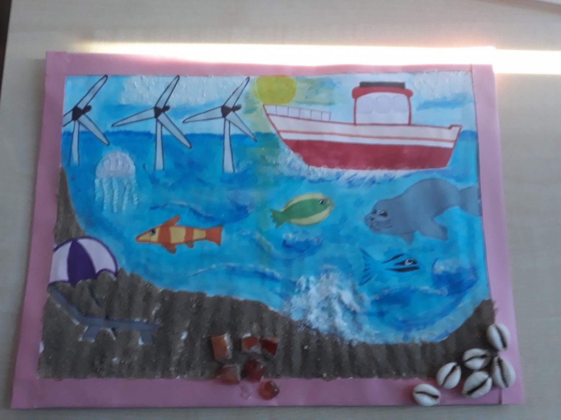 Prace uczniów klasy 1 na Gmnny Konkurs Plastyczno - Ekologiczny "Morze Bałtyckie - Zasoby i Znaczenie"