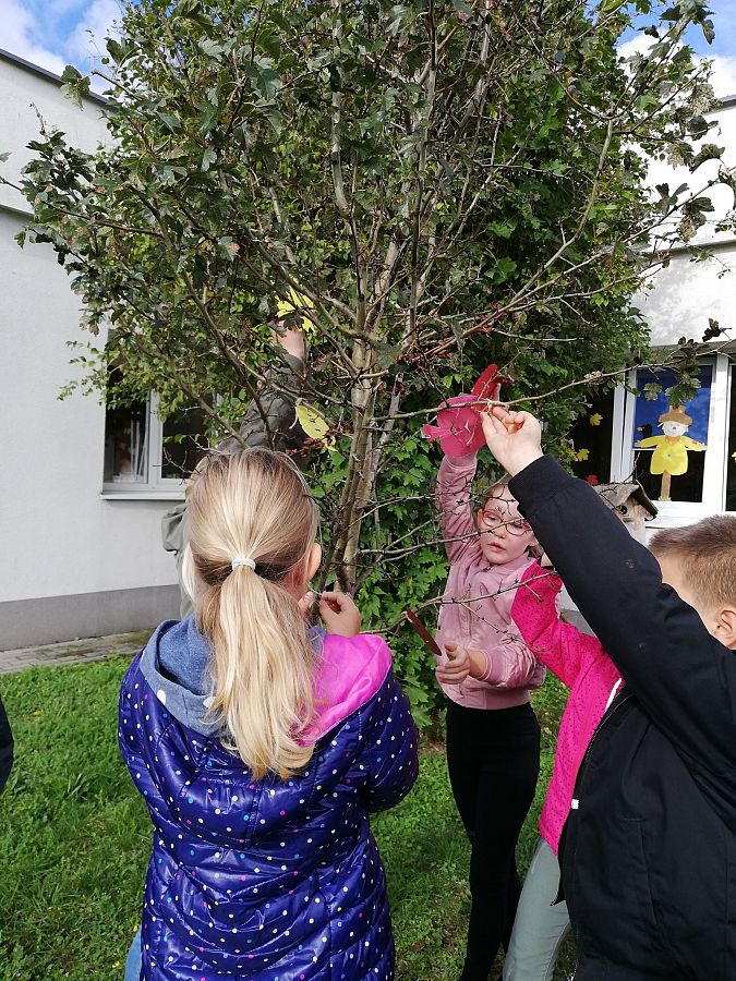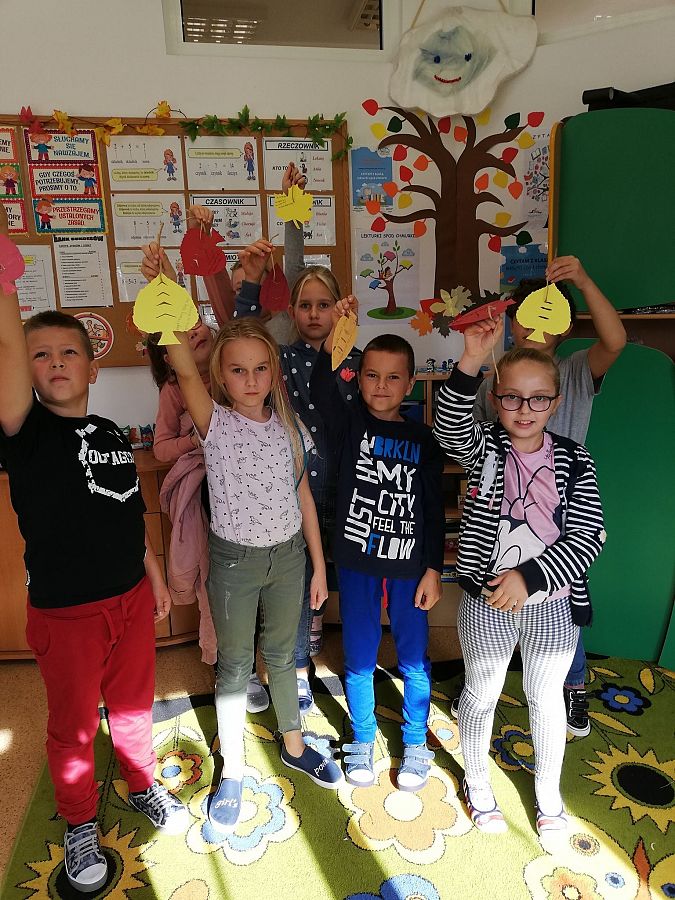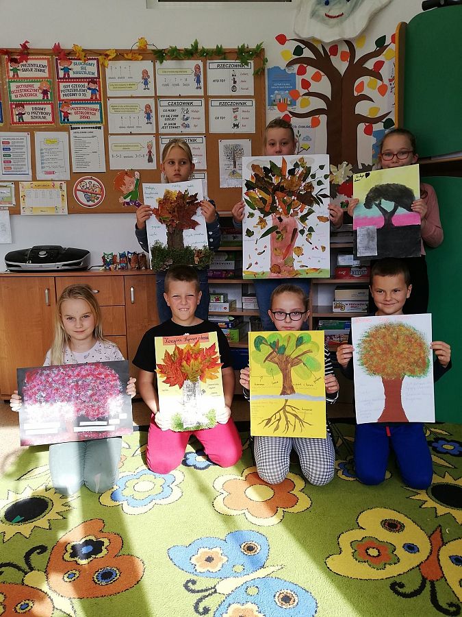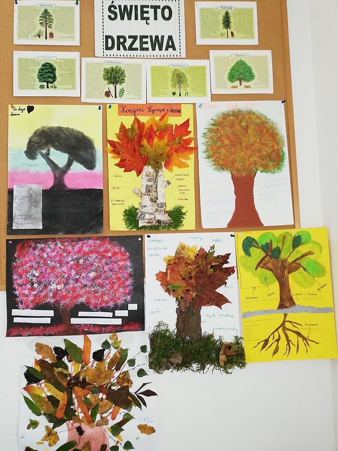 09.10.2020r. klasa trzecia obchodziła Dzień Drzewa. Dzieci wykonały plakaty "Jakie korzyści czerpiemy z drzew." Poznały różne gatunki drzew rosnących w lesie , oraz sposoby ochrony lasów i drzew, Wykonały kolorowe listki na których zlożyły pisemne obietnice drzewom i zawiesiły je na drzewku przed szkołą. Wykonały równiez gazetkę na korytarzu szkolnym upamiętniająca ten dzień..