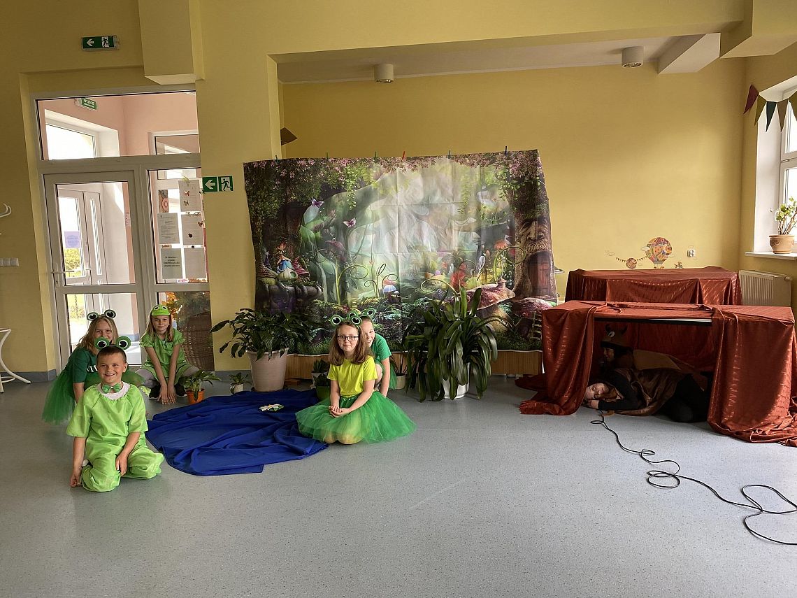 26.05. uczniowie klasy trzeciej wystawili przedstawienie teatralne pt."Żuczk i żabki" dla swoich mam w dniu ich święta. Obdarowali również swoje mamy upominkami wykonanymi własnoręcznie oraz złożyli życzenia . Następnego dnia przedstawienie pokazali również młodszym kolegom z grupy przedszkolnej oraz zerówki i klasy pierwszej. Przedstawienie przygotowywane było w ramach realizacji godzin kółka teatralnego.