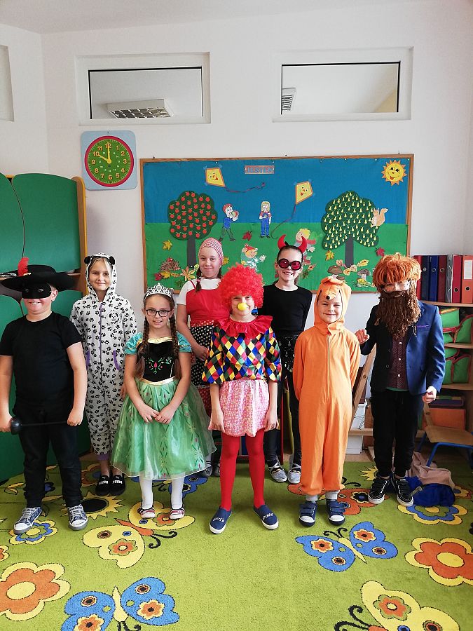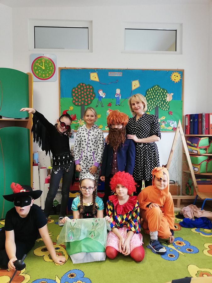 05.11.20 r. obchodziliśmy w naszej szkole Międzynarorowy Dzień Postaci z Bajek. Uzniowie w tym dniu przyszli przebrani za postacie z bajek.Każdy z nich przedstawił swoją postać i opowiedział z jakiej bajki pochodzi. Później czytaliśmy wspólnie wybraną przez uczniów bajkę. Było wesoło i bajkowo tego dnia w naszej klasie.