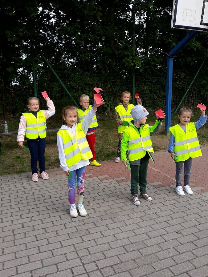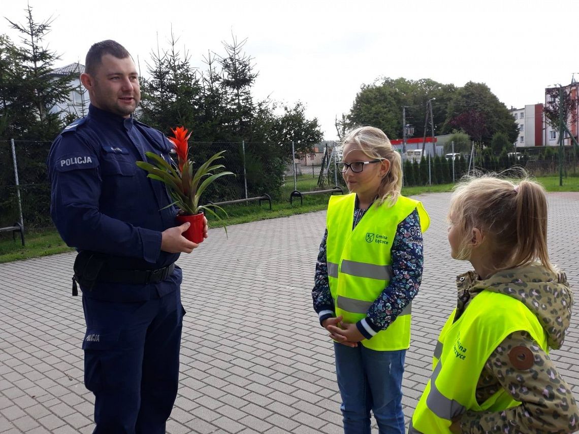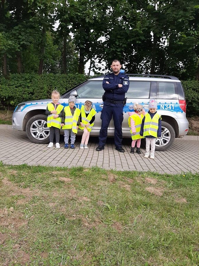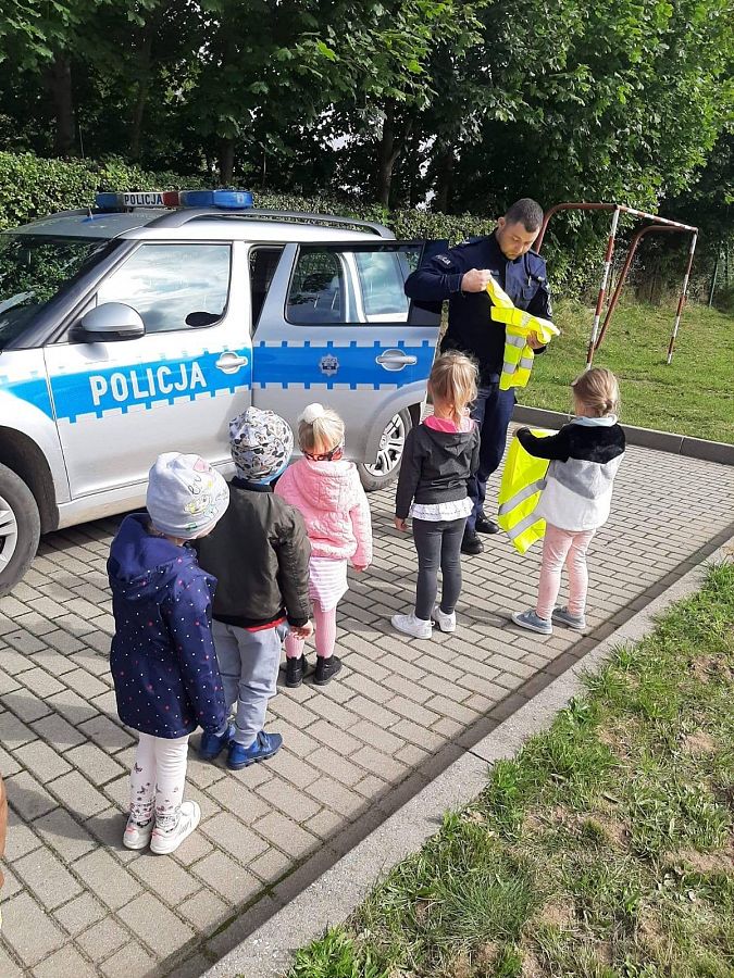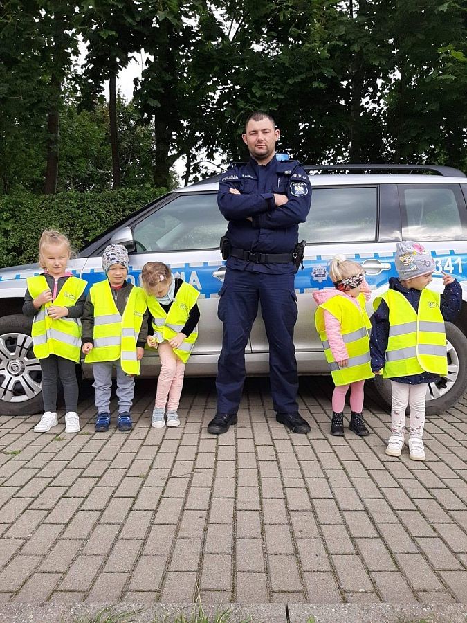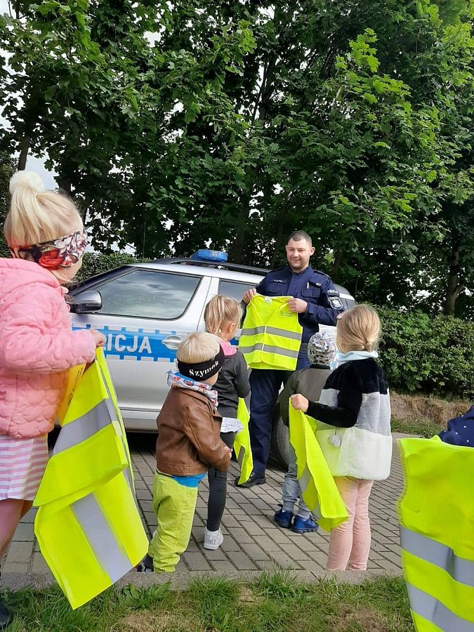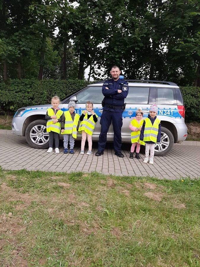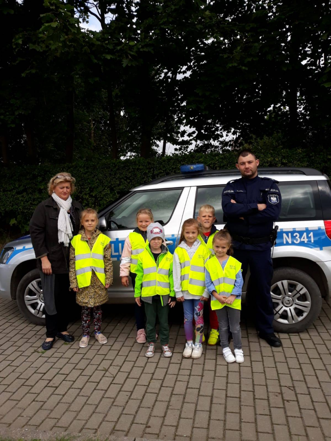 14.09.20 r.do naszej szkoły zawitał Pan Policjant! Wyjaśnił ucznom jak należy poruszać się po drogach, aby bezpiecznie dotrzeć do celu. Była to bardzo ciekawa i pouczająca "lekcja", która z pewnością pozostanie w pamięci wychowanków! Dziękujemy panu Dzielnicowemu za spotkanie oraz za kamizelki odblaskowe, które podarował dzieciom