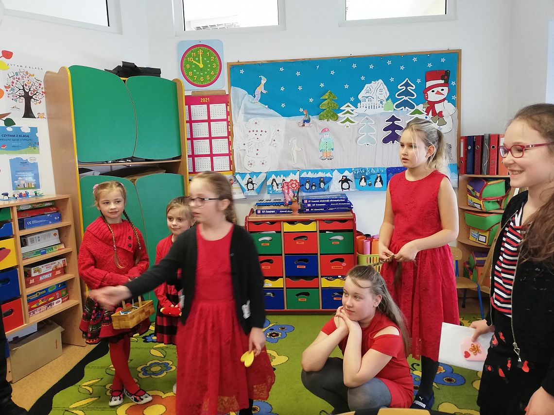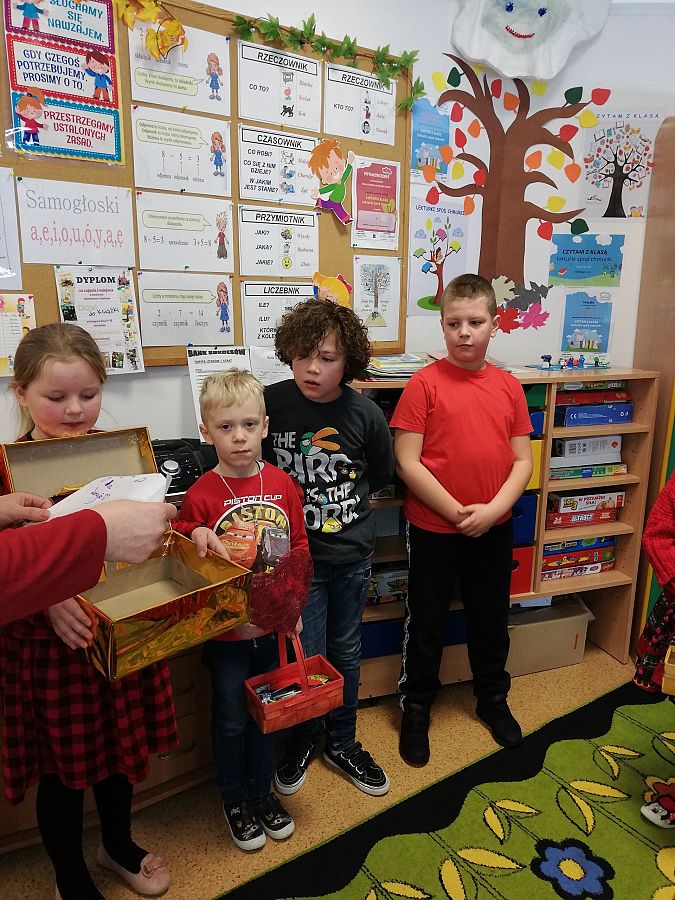 Jak co roku w naszej klasie obchodziliśmy Dzień Zakochanych. Uczniowie przygotowali kartki walentynkowe dla swoich koleżanek i kolegów ze szkoły które potem wrzucili do przygotowanego pudełka. Podczas wręczania kartek wyczuwało się duże podekscytowanie wśród uczniów. Każdy czekał na swą Walentynkę. Klasa 3 nie zapomniała również o pracownikach szkoły, każdy otrzymał kartkę walentynkową z wyrazami sympatii ,wykonaną przez dzieci. Było wiele radości a nawet wzruszeń.