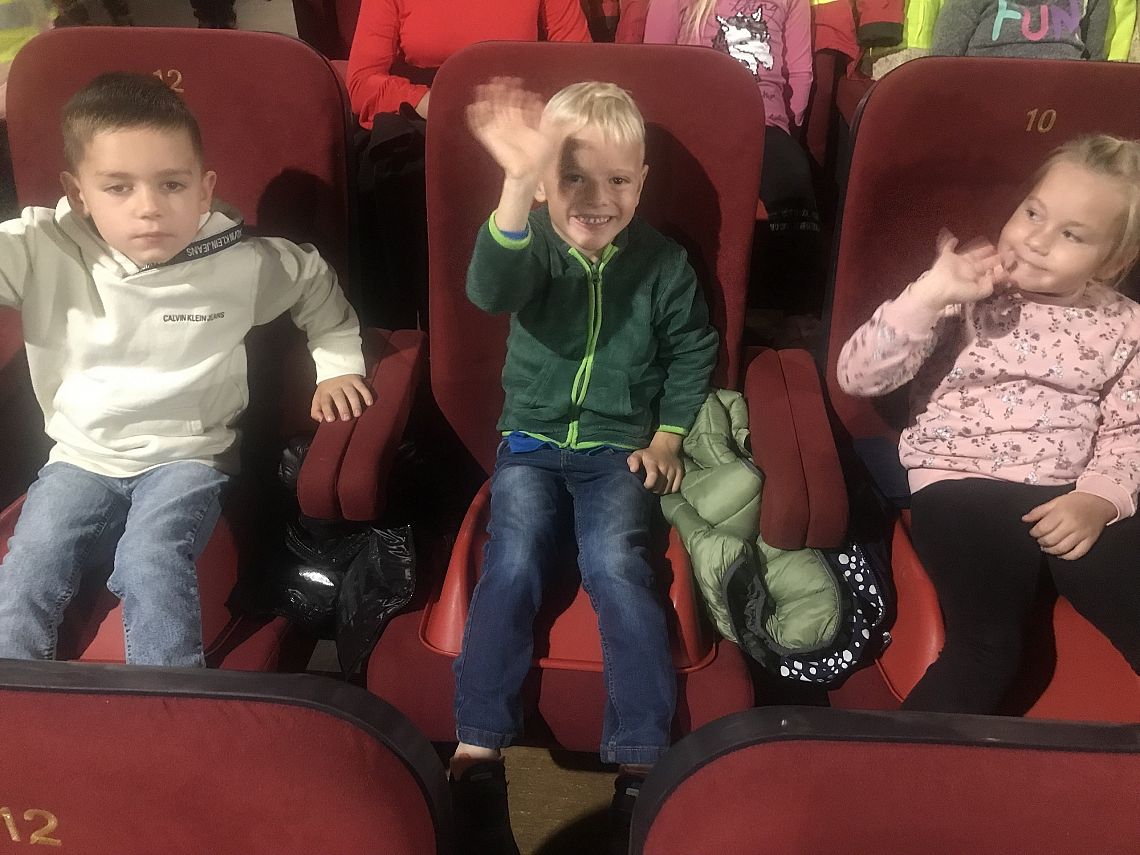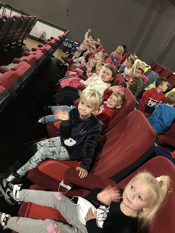 Kl. „0a” OP w Brzeźnie Lęborskim na przeglądzie bajek „Gdynia - Dzieciom” w kinie Fregata w Lęborku (24.09.2021r.).