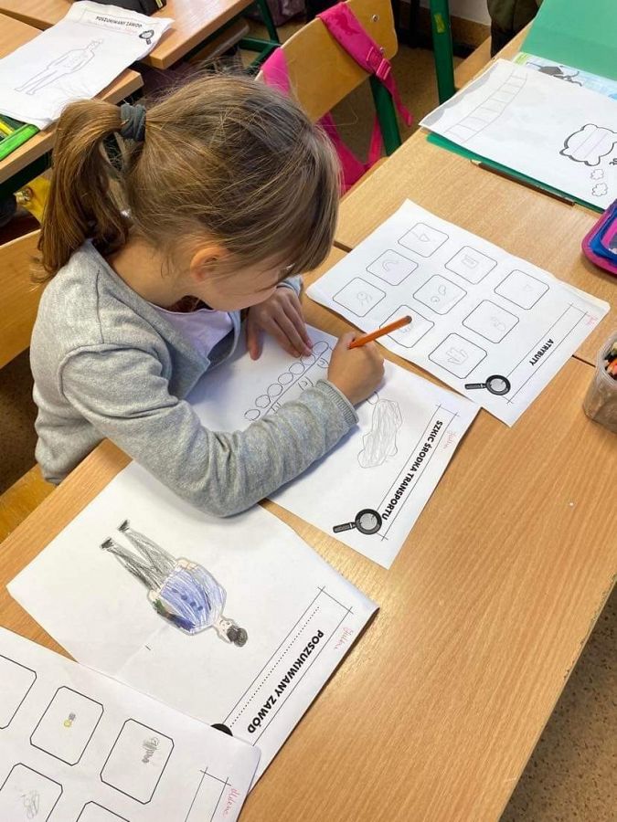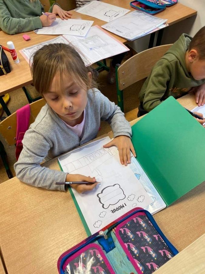 Uczniowie klasy I c zrealizowali I moduł Podróże małe i duże projektu "Czytam z klasą. Lekturki spod chmurki". Na początku wysłuchaliśmy opowiadania Chmurki Tosi, spakowaliśmy walizkę i wybraliśmy się w podróż do Włoch z Lampo, bohaterem książki „O psie, który jeździł koleją” R. Pisarskiego. Pokolorowaliśmy i uzupełniliśmy lekturnik. Następnie wykonaliśmy zakładki do książek. Wykonaliśmy plakat, którym chcieliśmy zachęcić swoich kolegów do czytania książek, zorgamizowaliśmy klasowy Dzień Postaci z Bajki .Po otrzymaniu listu od Chmurki Tosi wybraliśmy się w wirtualną podróż po „Mieście Zawodów”. To tam poznaliśmy na czym polega zawód konduktora, maszynisty, dróżnika.