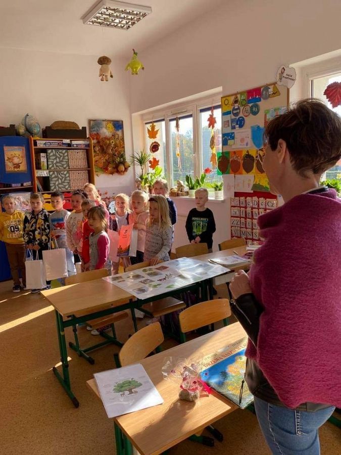 Dzisiaj w szkole w Brzeźnie obchodziliśmy Święto drzewa. Uczniowie poznali różne gatunki drzew rosnących w Polsce oraz dowiedzieli sie jakie korzyści mamy z drzew.Nauczyli się też rozpoznawać drzewa w najbliższej okolicy z naszym gościem Gabrielą Szmidtke kierownikiem Referatu Ochrony Środowiska i Klimatu w Urzędzie Gminy Łęczyce.