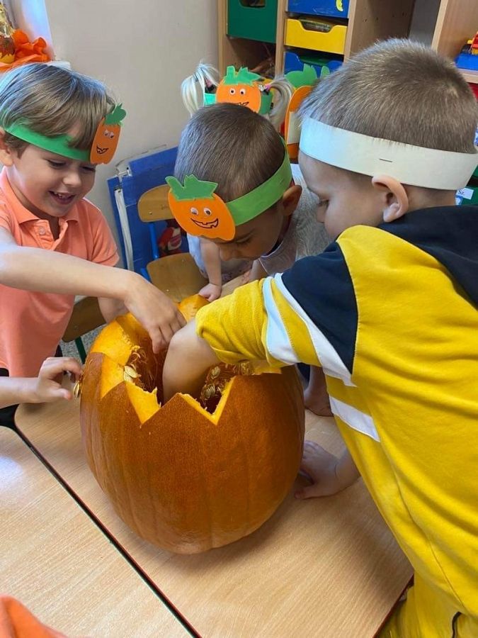 Klasa I razem z przedszkolakami obchodziła 29 października Dzien dyni. Były zabawy , konkursy , przepisy na potrawy z dyni a także "poznanie dyni od środka" Dzieci świetnie się bawiły i wiele dowiedziały sie na temat dyni ,jej pochodzenia oraz poznały różne jej gatunki