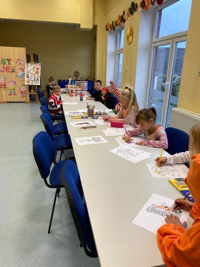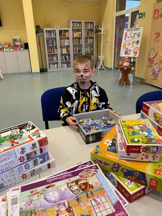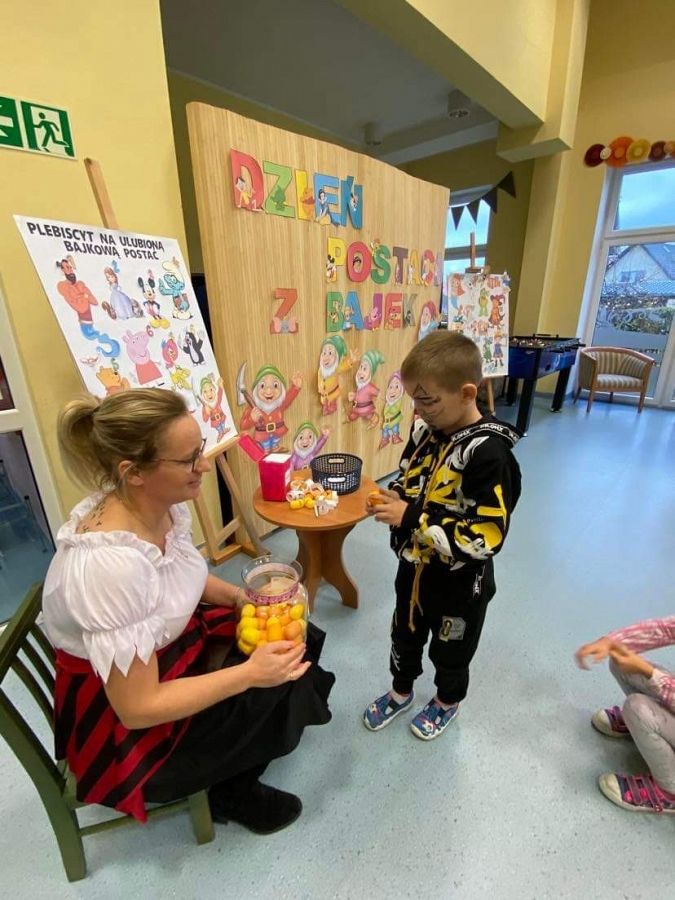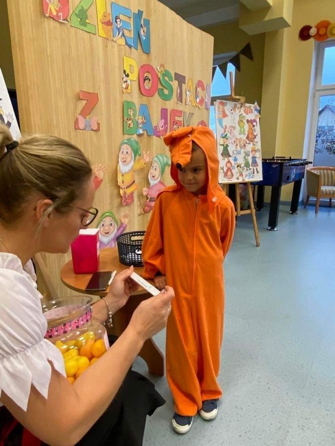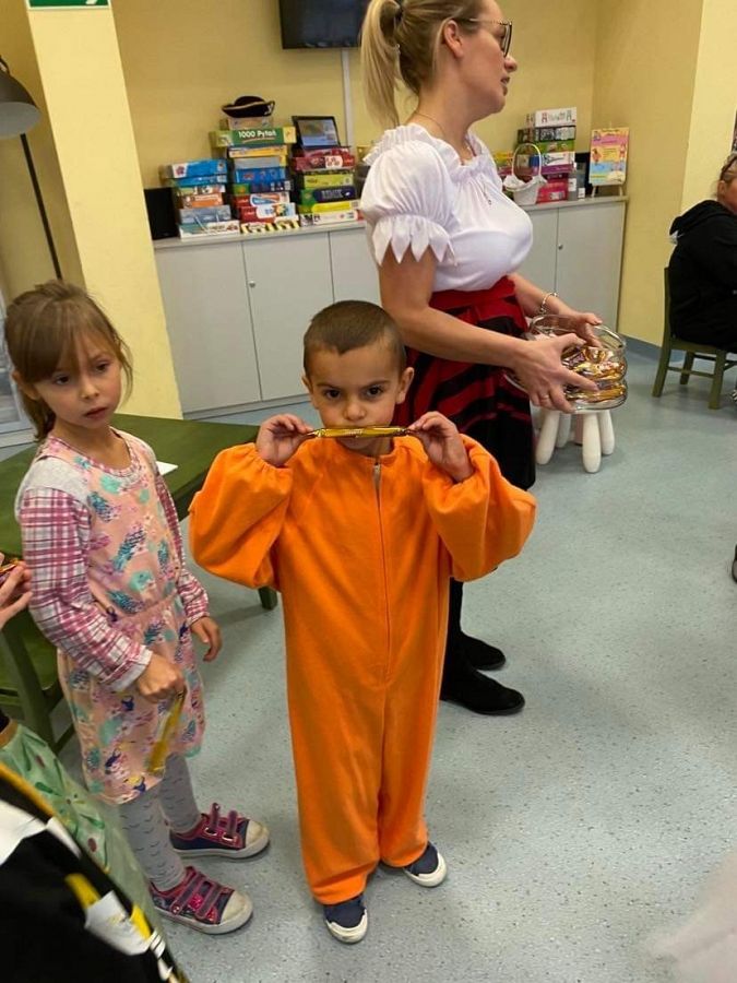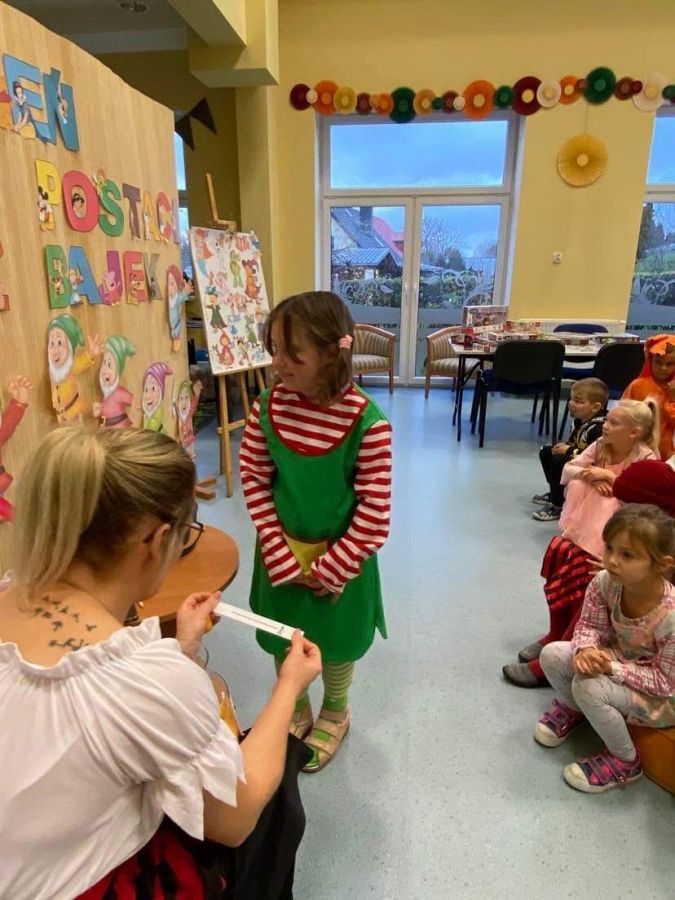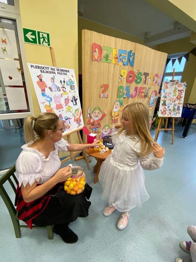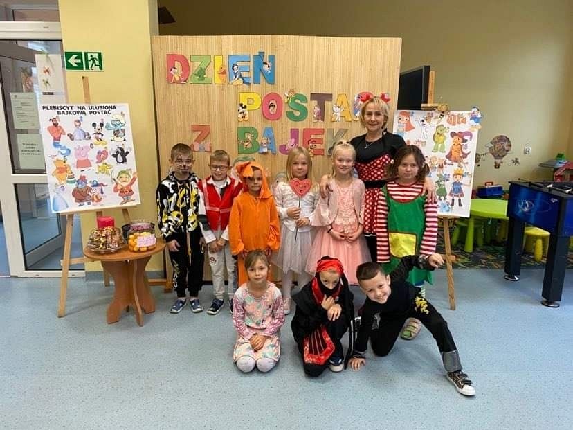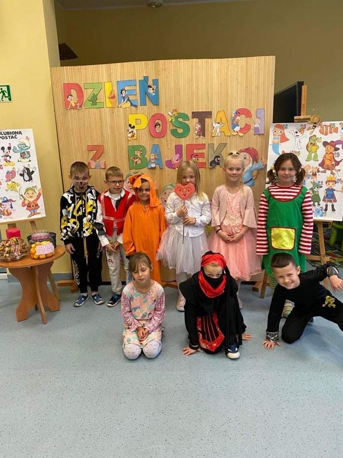 Dziś obchodzilismy w naszej klasie Międzynarodowy Dzień Postaci z Bajek . Wszyscy uczniowie wraz z wychowawcą przyszli przebrani za postacie bajkowe.Każdy powiedział parę zdań o swojej postaci i z jakiej bajki pochodzi. Uczniowie rozwiązywali Quizz tablicy interaktywnej, odgadując z jakich bajek są przedstawione postacie. Podczas przerw świetnie bawili się w czytelni rozwiązujac zagadki , rysując oraz bawiąc się z panią Gabrysią (naszą bibliotekarką) która przygotowała dla nich wiele atrakcji.
