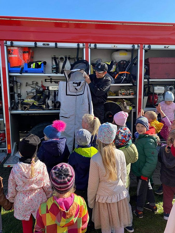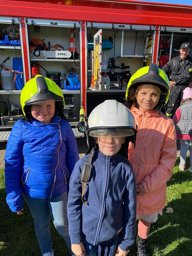 30.09.2021r. odwiedzili naszą szkołę strażacy. Dzieci zostały zapoznane ze sprzętem strażackim i jego zastosowaniem. Dowiedziały sie również na czym polega praca strażaka.