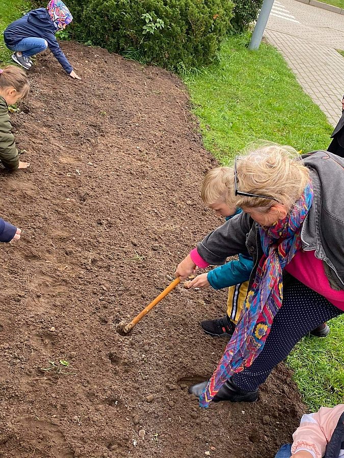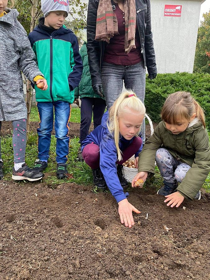 7.10.20201klasa Ic i II c z Brzeźna założyły na terenie szkolnym POLE NADZIEI – ogródek z narcyzami/żonkilami, które przeznaczone zostaną na wiosenną kwestę na rzecz hospicjum.