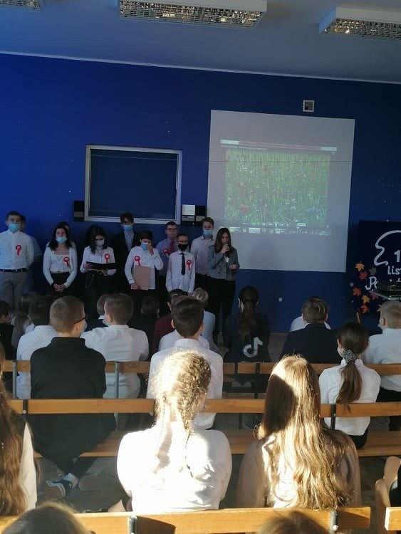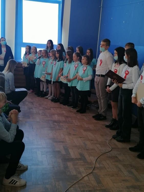 W dniu dzisiejszym obchodziliśmy uroczyście jedno z najważniejszych świąt dla Polaków - Odzyskanie Niepodległości. Apele dla Zespołu Szkolno - Przedszkolnego oraz klasy 2c w Filii w Brzeźnie lęborskim odbyły się w kilku turach ze względu na procedury covidowe. Poruszającą prezentację przygotowała Pani Danuta W. wspólnie z Panią Katarzyną H., za dekorację odpowiedzialna była Pani Anita K. Uczniowie klas ósmych, Samorząd Uczniowski oraz chór szkolny wprowadzili nas wszystkich w nastrój tamtych czasów... PAMIĘTAMY...