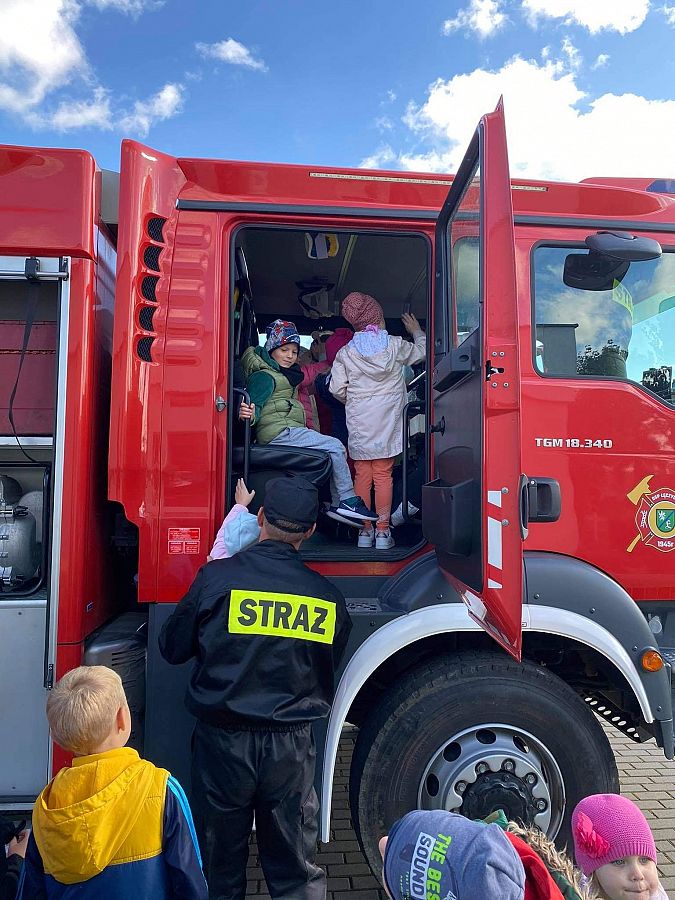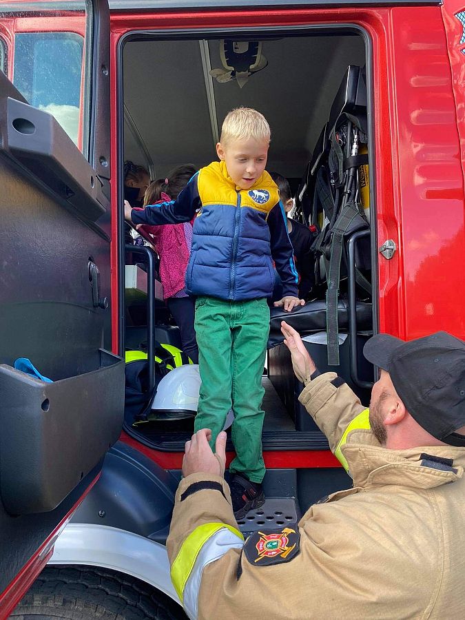 30.09.2021r. odwiedzili naszą szkołę strażacy. Dzieci zostały zapoznane ze sprzętem strażackim i jego zastosowaniem. Dowiedziały sie również na czym polega praca strażaka.