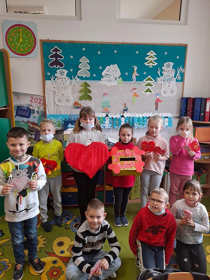 W ostatni dzień przed feriami zimowymi uczniowie klasy 2c zamienili się w kurierów walentynkowych. Każdy uczeń i przedszkolak otrzymał Walentynkę. Przez tydzień można było wrzucać do specjalnie przygotowanej skrzynki walentynki...To miłe, że możemy okazywać sobie sympatię i przyjaźń w sympatyczny sposób.